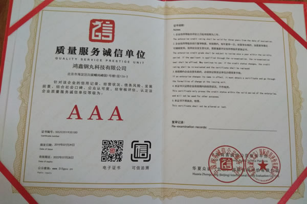 公司所有產(chǎn)品均通過ISO9001 **質(zhì)量認(rèn)證,2014年更獲得了第三屆中國金屬磨料行業(yè)具有影響力品牌-華尊獎(jiǎng)